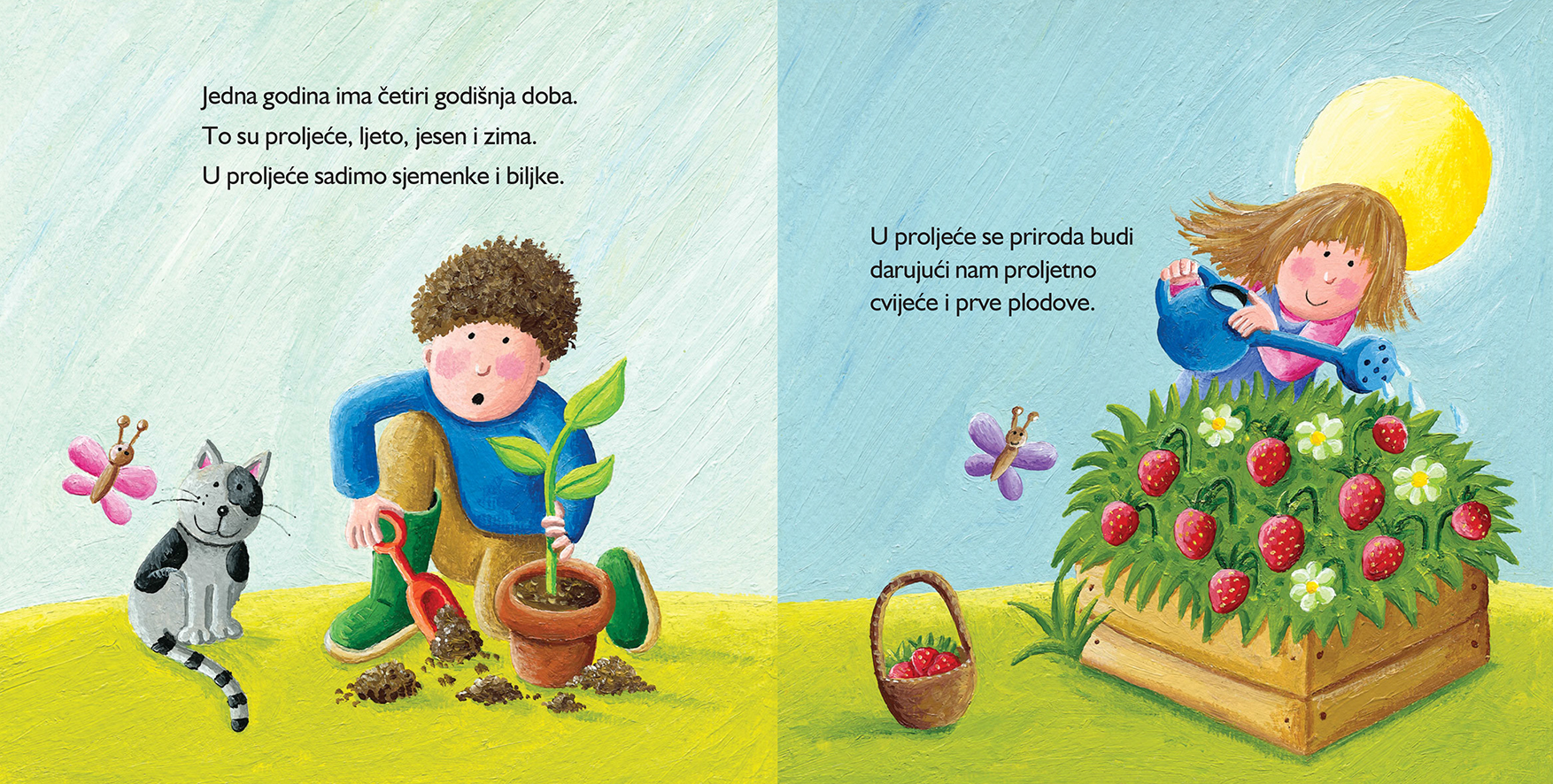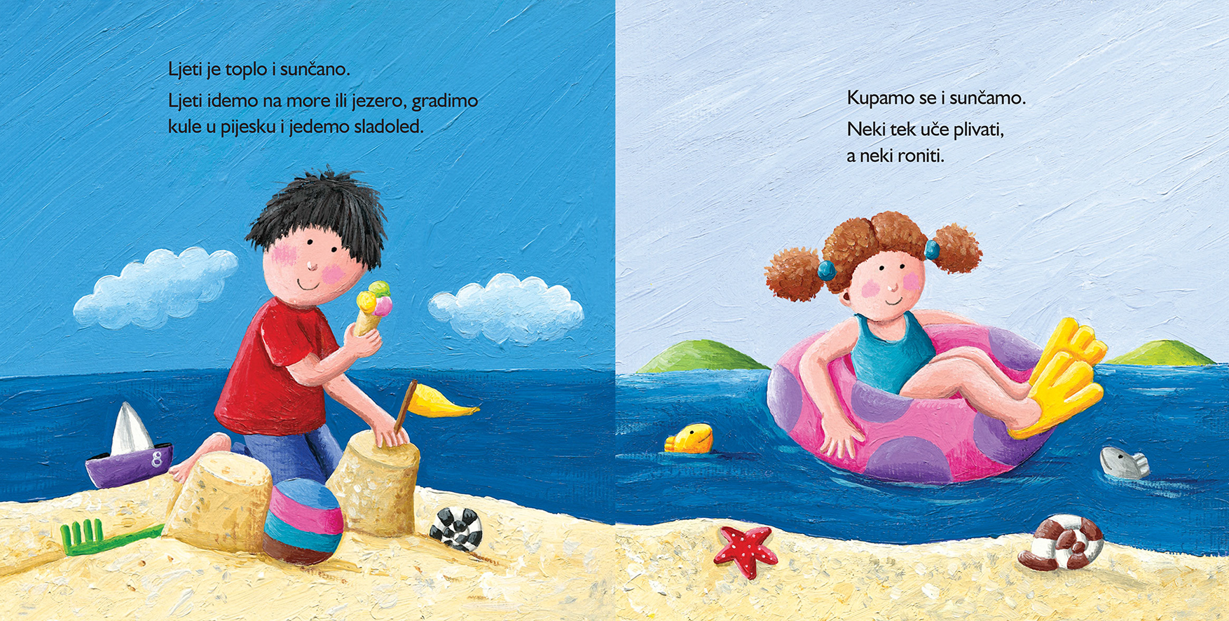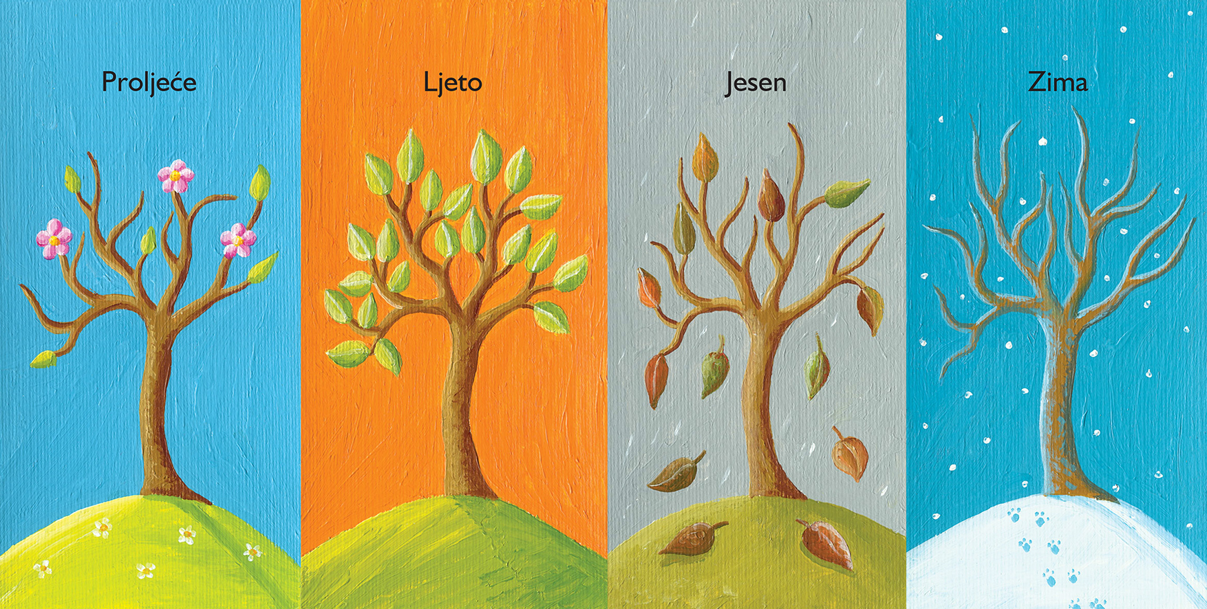Jedna godina ima četiri godišnja doba. To su proljeće, ljeto, jesen, zima. Što radimo i kako se priroda ponaša u koje godišnje doba pročitajte u našoj slikovnici.