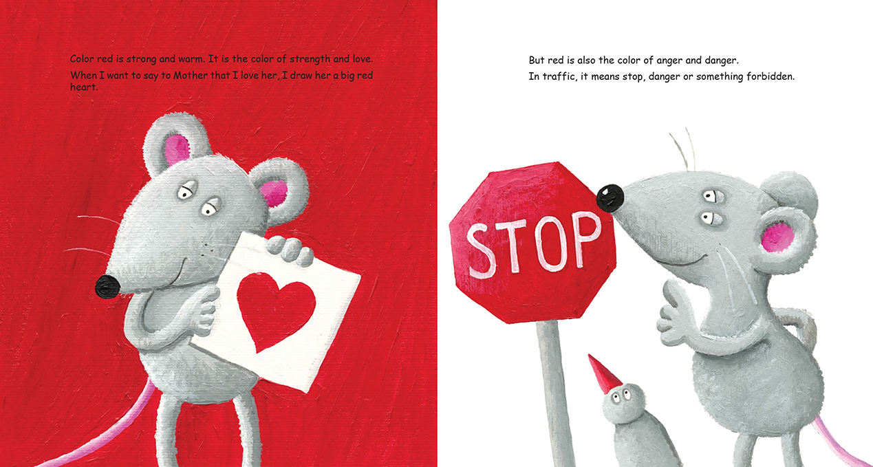 What are primary colors, which colors are cold and which ones warm, what feelings does an individual color stir? The entire story is told by a small and ordinary grey mouse, whose grey color makes him utterly neutral and thus an ideal guide in this stroll through the world of colors. This picture book is an original work by Andrea Petrlik and Kasmir Huseinovic, designed for preschool children and first graders in primary schools.